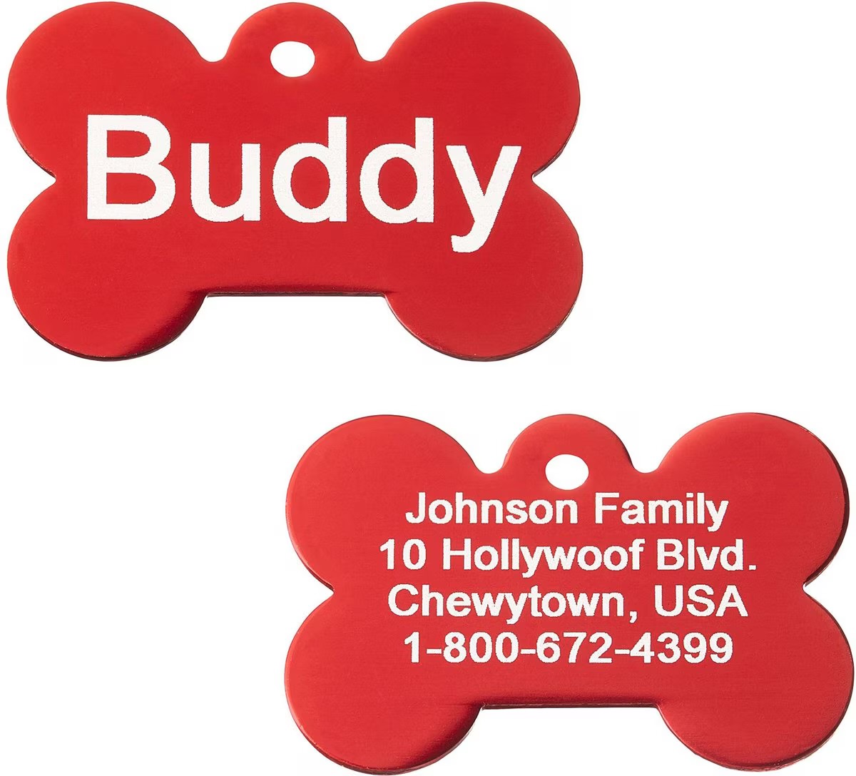 - The permanent laser engraving is clear to read on this lightweight tag. Available in 2 sizes for pets small or large.