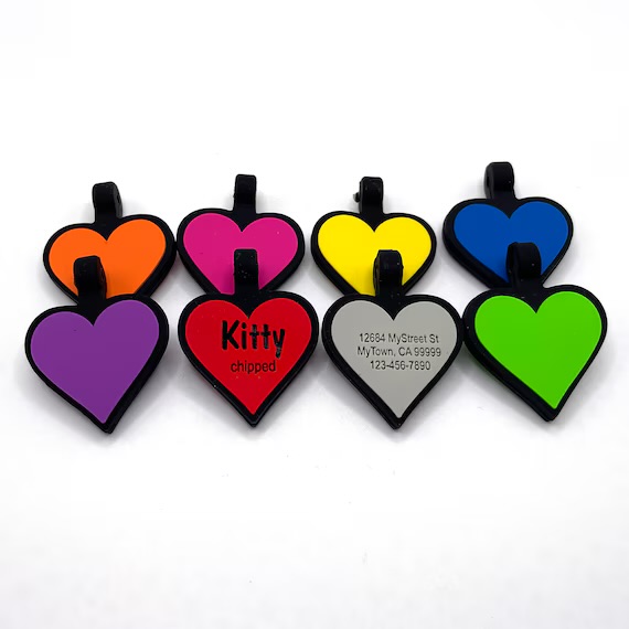 Durable Silicone Pet ID tag engraved to your liking with the information you provide us. QR codes are also offered as an option for now extra cost.